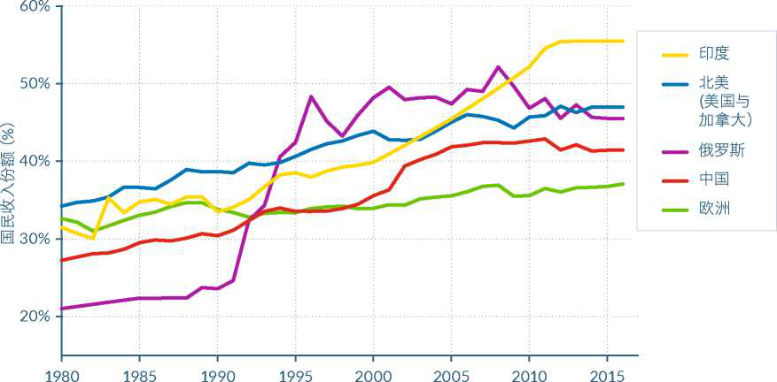 資料來源:時(shí)間財(cái)富與收入不平等數(shù)據(jù)庫(WID world)。世界不平均報(bào)告201(WIR2018.wid.world)