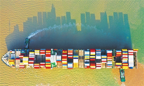 2019年,“中國號(hào)”巨輪在高質(zhì)量航道穩(wěn)健行進(jìn),前三季度國內(nèi)生產(chǎn)總值增長6.2%,在全球經(jīng)濟(jì)總量1萬億美元以上的經(jīng)濟(jì)體中增速最快。圖為一艘滿載集裝箱的貨輪緩緩駛離上海洋山深水港碼頭。計(jì)海新攝(中經(jīng)視覺)