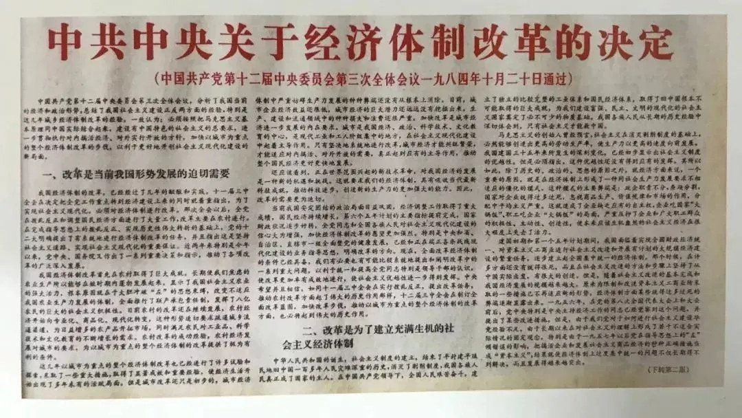 隨著改革取得巨大成功和人們對推進改革的共識逐步形成,1984年10月,黨的十二屆三中全會通過《中共中央關于經濟體制改革的決定》,確定社會主義經濟是“公有制基礎上的有計劃的商品經濟”,改革的重點逐漸從農村轉向城市,以搞活國有企業(yè)為中心環(huán)節(jié)全面展開。對國有企業(yè)實施了承包制、租賃制等改革措施,積極進行以廠長負責制、工效掛鉤、勞動合同制為內容的企業(yè)領導、分配、用工等管理制度的改革,增強企業(yè)的內在活力。宏觀管理體制方面,以宏觀間接管理為目標,對價格、財稅、金融、計劃以及流通體制等進行改革。采取“調、放、管”相結合的方針,理順商品和服務的比價關系;大幅度縮小指令性計劃;改革銀行組織體制;實行各種形式的財政包干制。同時,政治、科技、教育、文化等領域的改革也開始啟動。開放沿海14個港口城市,開辟了一批經濟開放區(qū)。