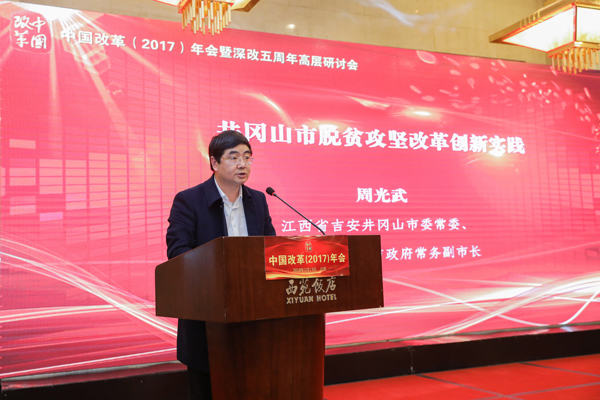 江西省吉安井岡山市委常委、常務(wù)副市長(zhǎng)周光武介紹,井岡山在脫貧攻堅(jiān)改革實(shí)踐中創(chuàng)新性地提出“三卡”建檔辦法,即,紅卡(特困戶)、藍(lán)卡(一般貧困戶)、黃卡(2014年已脫貧貧困戶);創(chuàng)造“12345”精準(zhǔn)識(shí)別機(jī)制;建立了長(zhǎng)效脫貧機(jī)制,即,創(chuàng)新干部幫扶機(jī)制,解決缺力量的問(wèn)題,創(chuàng)新基金投入機(jī)制解決缺資金的問(wèn)題;創(chuàng)新考核導(dǎo)向機(jī)制給足力的問(wèn)題。