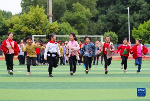 11月4日,在湖南省永州市新田縣雙碧小學(xué),孩子們在運動場上做游戲。今年秋季學(xué)期開學(xué)以來,各地積極落實“雙減”政策,利用課后服務(wù)時間開展內(nèi)容豐富、形式多樣的課外活動,促進學(xué)生全面發(fā)展。新華社發(fā)(劉貴雄攝)