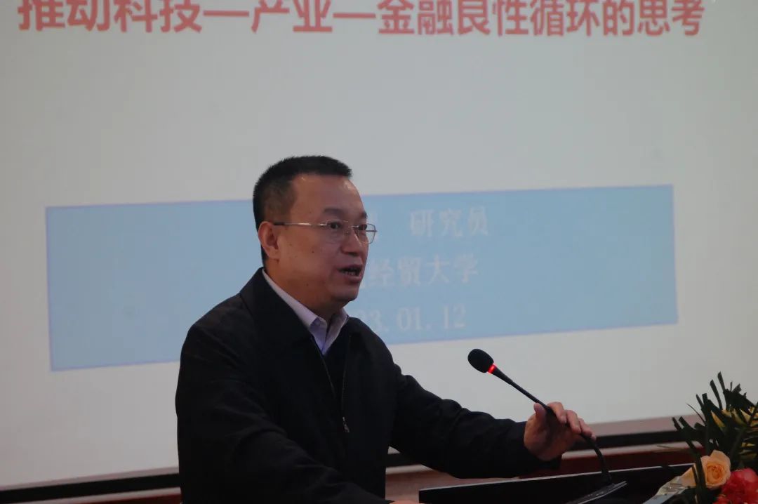 史玉強(qiáng)在書面致辭中說,此次會(huì)議雖然規(guī)模不大,時(shí)間也不長(zhǎng),但內(nèi)容很豐富,層層較高,很有特點(diǎn),是一個(gè)小而精、小而美的高質(zhì)量研討會(huì)。會(huì)議以貫徹黨的二十大精神,深化改革,推動(dòng)經(jīng)濟(jì)高質(zhì)量發(fā)展為主題,深入研究產(chǎn)業(yè)、科技、金融良性驅(qū)動(dòng),建設(shè)現(xiàn)代化產(chǎn)業(yè)體系,是當(dāng)前經(jīng)濟(jì)工作重點(diǎn)。會(huì)議組織形式新穎,兩個(gè)研究會(huì)、一所大學(xué)、一家銀行聚集研討,各有特點(diǎn),各有優(yōu)勢(shì),一定會(huì)推出高水平成果。參會(huì)演講的專家都是業(yè)內(nèi)、省內(nèi)的頂級(jí)專家,是一次名副其實(shí)的精英聚會(huì)。會(huì)議堅(jiān)持虛實(shí)結(jié)合,設(shè)計(jì)了銀企對(duì)接環(huán)節(jié)。
