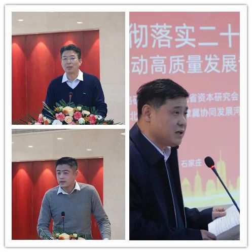 中國(guó)商業(yè)經(jīng)濟(jì)學(xué)會(huì)副會(huì)長(zhǎng)、河北省改革戰(zhàn)略研究會(huì)顧問、河北經(jīng)貿(mào)大學(xué)原校長(zhǎng)紀(jì)良綱,河北省資本研究會(huì)會(huì)長(zhǎng)、杰明投資董事長(zhǎng)李月分別發(fā)表致辭,中國(guó)經(jīng)濟(jì)體制改革研究會(huì)副會(huì)長(zhǎng)、河北省改革戰(zhàn)略研究會(huì)會(huì)長(zhǎng)劉萬(wàn)玲致辭并作主旨演講,河北資本研究會(huì)首席經(jīng)濟(jì)學(xué)家、河北省商務(wù)廳原巡視員史玉強(qiáng)從外地發(fā)來(lái)書面致辭。河北省改革戰(zhàn)略研究會(huì)副會(huì)長(zhǎng)、河北經(jīng)貿(mào)大學(xué)副校長(zhǎng)田學(xué)斌教授,邯鄲銀行黨委書記、董事長(zhǎng)鄭志瑛教授,河北省宏觀經(jīng)濟(jì)研究院副院長(zhǎng)高智研究員,河北經(jīng)貿(mào)大學(xué)金融學(xué)院院長(zhǎng)王重潤(rùn)教授分別作主題演講。河北省改革戰(zhàn)略研究會(huì)副會(huì)長(zhǎng)、河北省社科院創(chuàng)新驅(qū)動(dòng)發(fā)展研究中心主任顏廷標(biāo)研究員主持研討會(huì)。會(huì)議期間還舉辦了新書發(fā)布、銀企對(duì)接活動(dòng)。參加會(huì)議的還有河北省改革戰(zhàn)略研究會(huì)特邀高級(jí)專家、河北冀廣傳媒集團(tuán)公司原董事長(zhǎng)趙華茂,河北省改革戰(zhàn)略研究會(huì)副會(huì)長(zhǎng)馮文斌 ,經(jīng)貿(mào)橋聯(lián)合創(chuàng)始人、省校企合作促進(jìn)會(huì)執(zhí)行會(huì)長(zhǎng)張曉軍,河北省資本研究會(huì)副會(huì)長(zhǎng)、河北省軍民兩用技術(shù)交易中心主任周天易,邯鄲銀行石家莊分行行長(zhǎng)常志英,河北省資本研究會(huì)秘書長(zhǎng)韓峰,河北省改革戰(zhàn)略研究會(huì)秘書長(zhǎng)李文正等。省內(nèi)經(jīng)濟(jì)界知名學(xué)者、行業(yè)專家和企業(yè)代表等30余人出席會(huì)議。