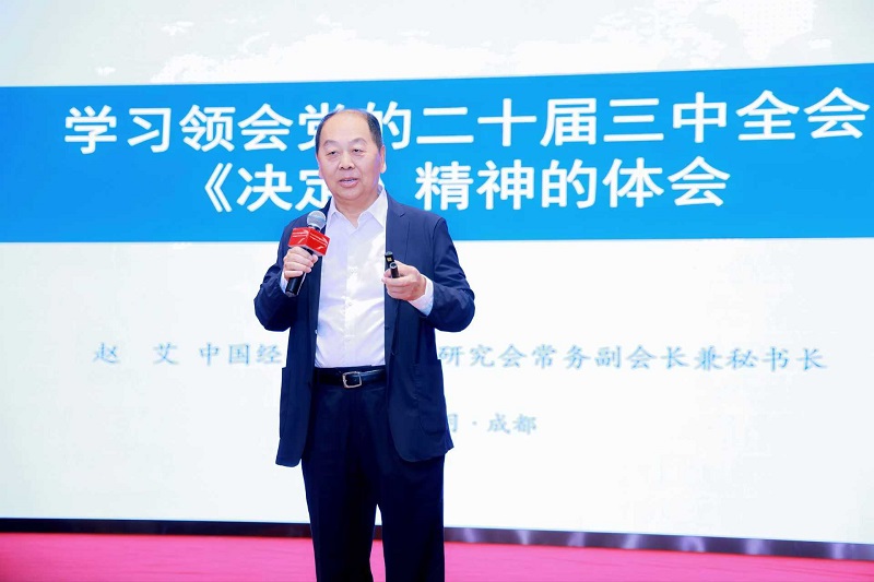趙艾談到,黨的二十屆三中全會(huì)是在新時(shí)代新征程進(jìn)一步全面深化改革開放,推進(jìn)中國式現(xiàn)代化關(guān)鍵時(shí)期召開的一次十分重要的會(huì)議,全會(huì)審議通過了《中共中央關(guān)于進(jìn)一步全面深化改革、推進(jìn)中國式現(xiàn)代化的決定》,提出了60條300多項(xiàng)重點(diǎn)改革舉措,內(nèi)容豐富、分量很重、成色十足?!稕Q定》對(duì)于繼續(xù)完善和發(fā)展中國特色社會(huì)主義制度,推進(jìn)國家治理體系和治理能力現(xiàn)代化,到2035年全面建成高水平社會(huì)主義市場(chǎng)經(jīng)濟(jì)體制,中國特色社會(huì)主義制度更加完善,基本實(shí)現(xiàn)國家治理體系和治理能力現(xiàn)代化,基本實(shí)現(xiàn)社會(huì)主義現(xiàn)代化,為到本世紀(jì)中葉全面建成社會(huì)主義現(xiàn)代化強(qiáng)國具有十分重要的意義。成都高新區(qū)在全面深化改革開放,以科技創(chuàng)新為引領(lǐng),因地制宜發(fā)展新質(zhì)生產(chǎn)力,激發(fā)高質(zhì)量發(fā)展內(nèi)生動(dòng)力,推動(dòng)產(chǎn)業(yè)結(jié)構(gòu)優(yōu)化升級(jí)等方面,積累了一系列可圈可點(diǎn)的經(jīng)驗(yàn)和做法,取得了一系列的亮眼成績。希望成都高新區(qū)百尺桿頭,再接再厲,按照黨的二十屆三中全會(huì)的精神,進(jìn)一步深化體制機(jī)制改革創(chuàng)新,以新質(zhì)生產(chǎn)力發(fā)展為引擎,推動(dòng)高質(zhì)量發(fā)展等方面取得更優(yōu)異的成績。中國經(jīng)濟(jì)體制改革研究會(huì)十分樂意與成都高新區(qū)就體制機(jī)制改革創(chuàng)新的重大問題開展合作研究。
