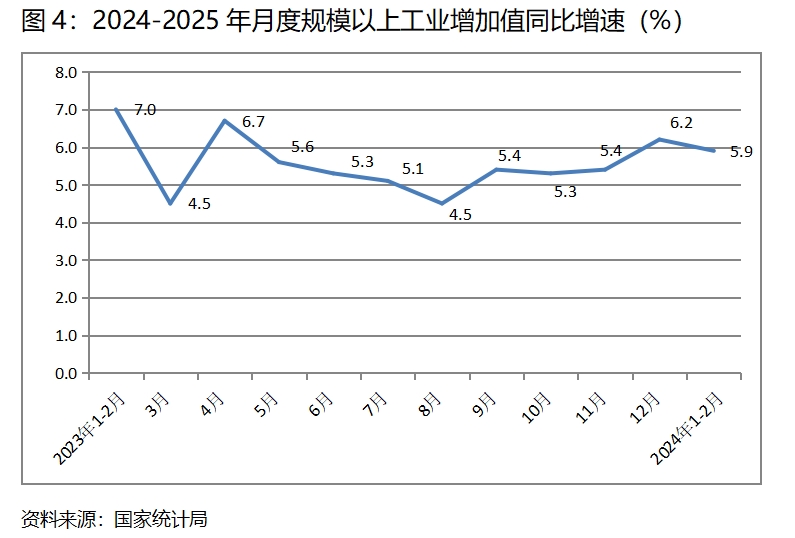 (一)工業(yè)增速由升轉(zhuǎn)落。1-2月份,規(guī)模以上工業(yè)增加值同比增長5.9%,比上年12月份增長6.2%回落了0.3個(gè)百分點(diǎn),上年12月份比上年11月份回升了0.8個(gè)百分點(diǎn)。1-2月份工業(yè)增速出現(xiàn)回落,有上年同期高基數(shù)的因素,如按兩年平均增速計(jì)算,增速為6.4%,說明規(guī)模以上工業(yè)出現(xiàn)了積極的回升勢頭。值得關(guān)注的是,在全部規(guī)模以上工業(yè)增速回落的同時(shí),規(guī)模以上制造業(yè)和私營企業(yè)增速卻保持了回升,1-2月份規(guī)模以上制造業(yè)同比增速比上年12月份回升0.5個(gè)百分點(diǎn),私營企業(yè)回升1.4個(gè)百分點(diǎn)。