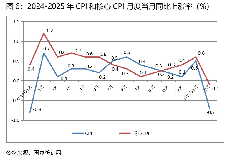 (四)CPI由上漲轉(zhuǎn)為下降。2月份,CPI同比下降0.7%,而1月份上漲了0.5%, CPI出現(xiàn)了由上漲轉(zhuǎn)為下降,有今年春節(jié)與上年春節(jié)錯(cuò)月因素的影響。其中食品價(jià)格下降3.3%,而上月上漲0.4%;非食品價(jià)格下降0.1%,而上月上漲0.5%。2月份,核心CPI同比下降0.1%,而1月份上漲0.6%。這其中盡管有春節(jié)錯(cuò)月因素的影響,但CPI下降特別是核心CPI首次出現(xiàn)的下降,還是說明擴(kuò)大需求還需要進(jìn)一步加大力度。
