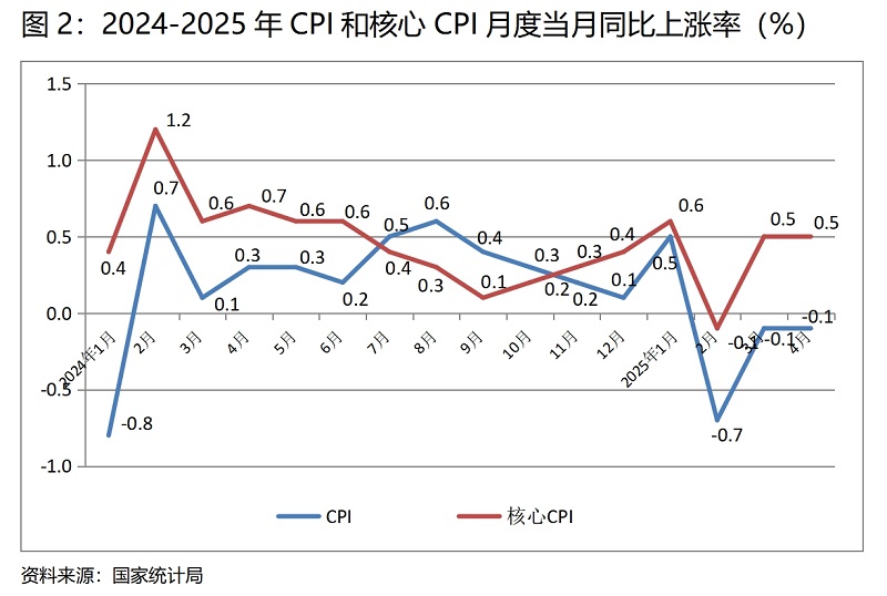 (二) CPI降幅與上月持平。4月份,CPI同比下降0.1%,與3月份下降0.1%持平, CPI已連續(xù)3個(gè)月下降,也是自上年2月份以來(lái)再次出現(xiàn)的下降;4月份,核心CPI同比上漲0.5%,與3月份上漲0.5%持平。CPI保持下降的趨勢(shì),雖然有國(guó)際石油價(jià)格下降因素的影響,但核心CPI仍保持在低位運(yùn)行,說(shuō)明需求特別是消費(fèi)需求仍還較為偏弱,擴(kuò)大需求特別是消費(fèi)需求還需要進(jìn)一步加大力度。