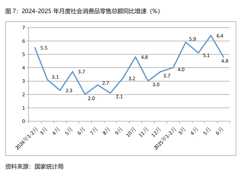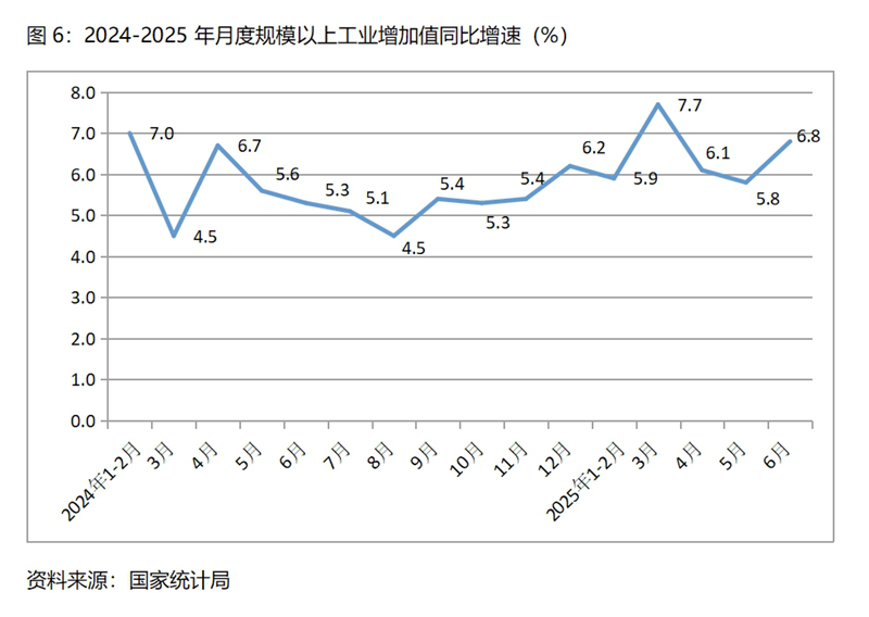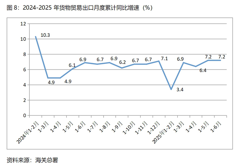 下半年GDP保持4.8%以上的增速,有政策實(shí)施、有趨勢(shì)慣性以及上年穩(wěn)定基數(shù)等因素的支撐。上半年積極的財(cái)政政策通過擴(kuò)大支出、適度寬松貨幣政策通過降準(zhǔn)降息、擴(kuò)大內(nèi)需通過設(shè)備更新和以舊換新等政策措施,在下半年將會(huì)繼續(xù)發(fā)揮作用,加之下半年積極財(cái)政政策和適度寬松貨幣政策的繼續(xù)實(shí)施,“兩重”、“兩新”政策等一系列政策措施的落實(shí),對(duì)下半年經(jīng)濟(jì)增長形成了有力支持。上半年GDP的較快增長,對(duì)下半年GDP增長發(fā)揮著慣性的作用,加之下半年GDP增長基數(shù)與上半年基數(shù)均是5.0%,穩(wěn)定的基數(shù)有利于下半年GDP增長4.8%以上。