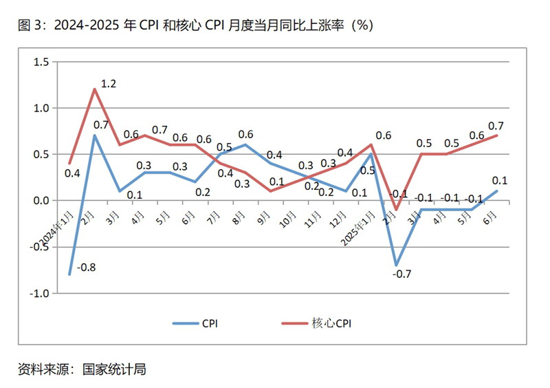 扣除食品和能源價(jià)格的核心CPI保持了上漲態(tài)勢(shì),但漲幅較為有限。上半年核心CPI上漲0.4%,其中1月份上漲0.6%,2月份下降0.1%,3月份以來漲幅呈現(xiàn)回升的態(tài)勢(shì),3月份和4月份均上漲0.5%,5月份上漲0.6%,6月份上漲0.7%。從核心價(jià)格變動(dòng)走勢(shì)看,今年以來經(jīng)濟(jì)運(yùn)行表現(xiàn)出活力有所增強(qiáng)的態(tài)勢(shì)。